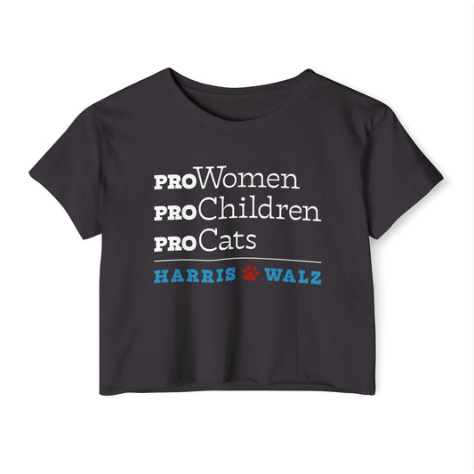 Women's Harris Walz Pro-Women Pro-Children Pro-Cats CROP Top